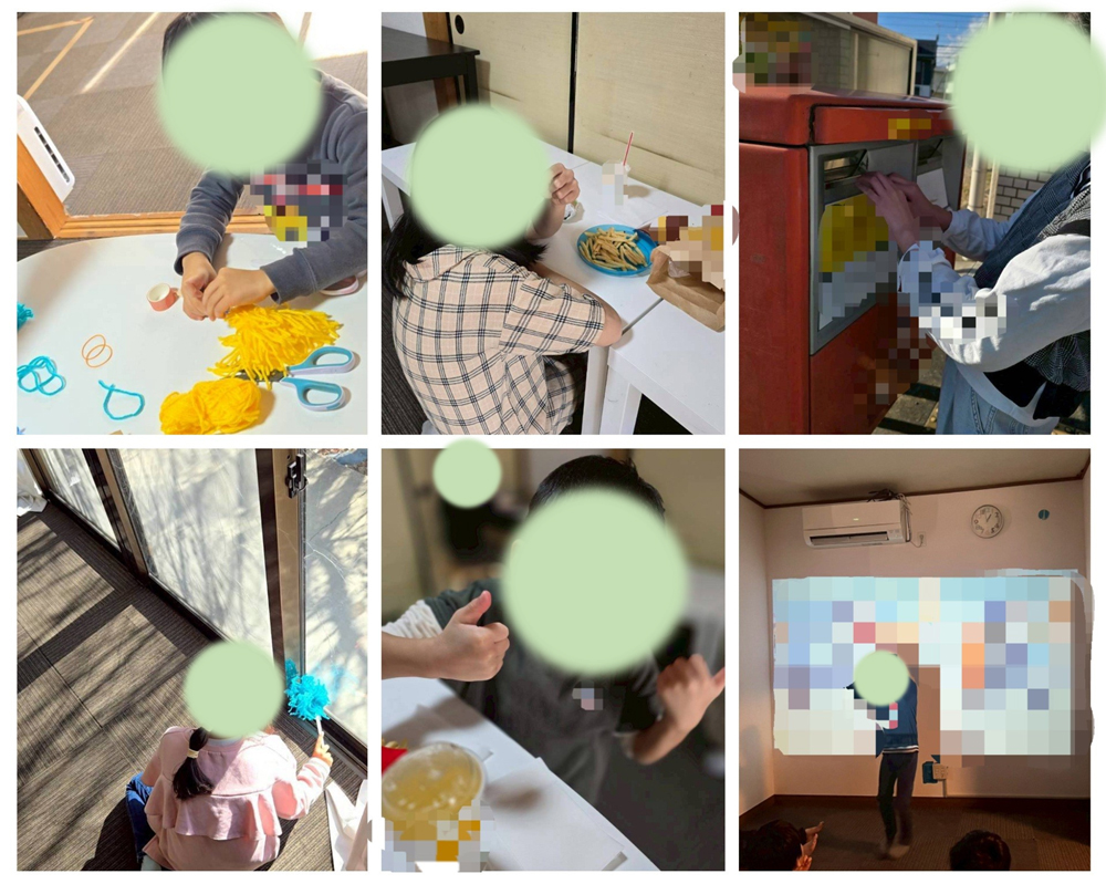 テイクアウトご飯では、お子さまから事前にリクエストを聞き、リクエスト多数だった某ハンバーガー店へ行きました🍔お店に向かう前に、何を注文するのかを職員と一緒に決めました。お店では勇気を出して1人で注文ができたお子さまもいれば、「ちょっと恥ずかしいなぁ」と感じて職員と一緒に注文するお子さまもいました。みんなそれぞれのペースで、頑張って注文することができました。教室に帰ってきてからは、みんなで「いただきます」をしてランチタイムです。「おいしいね」「最高」と言いながらおいしそうに食べる姿が印象的でした。店内や食事中のマナーを学ぶことができたイベントでした🎵